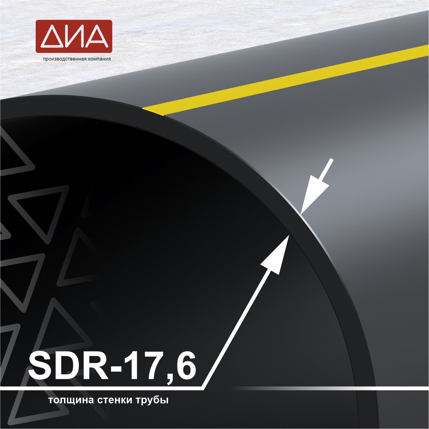 Трубы ПНД производятся из высококачественного полиэтилена в черном цвете и с маркировкой в виде полосы желтого цвета. Нормы изготовления этих труб строго регулируются ГОСТ Р 58121.2-2018 «Пластмассовые трубопроводы для транспортирования газообразного топлива» соответствует классу ПЭ-100.